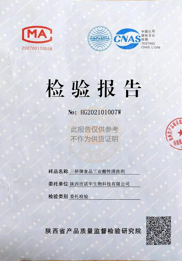 三橋牌食品工業(yè)酸性清洗劑(XNHSQ-2型)檢測(cè)報(bào)告