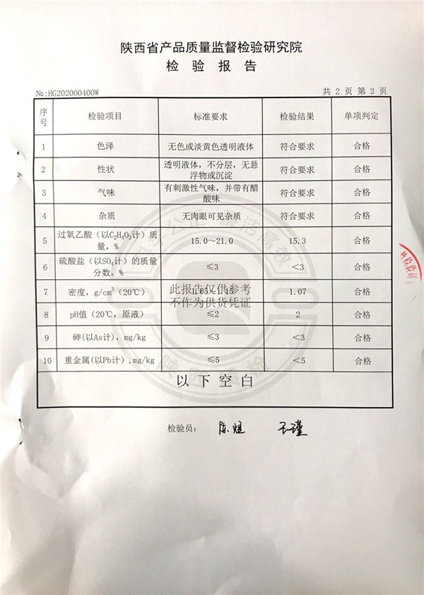 三橋牌過氧乙酸消毒劑(SQ-706型)檢測報告