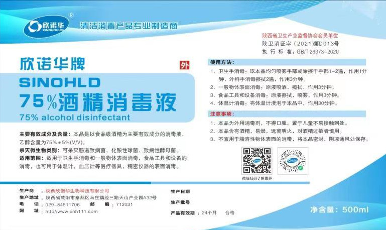 產(chǎn)品名稱: 欣諾華牌75%酒精消毒液 商標:欣諾華
