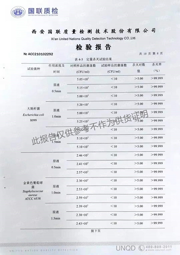 欣諾華牌復(fù)合季銨鹽消毒液(XNH100型)檢測(cè)報(bào)告