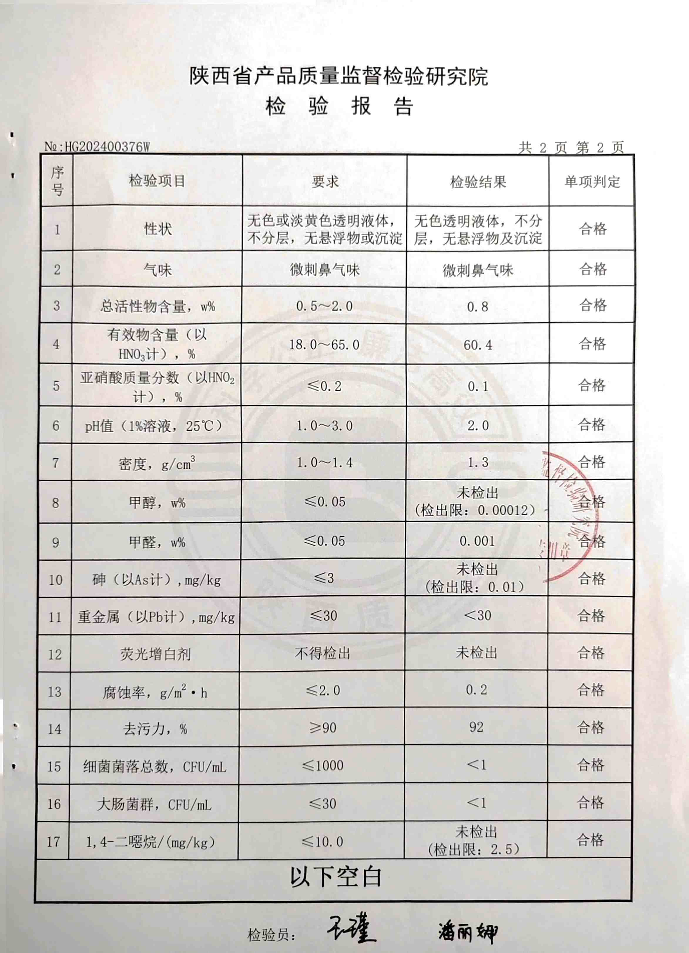 食品工業(yè)酸性清洗劑檢測(cè)報(bào)告(2024年度)
